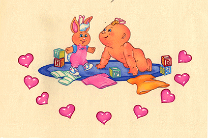 This section will only focus on original Cabbage Patch Kids artwork I have picked up. These pieces were used (possibly some unproduced) by American Toy & Furniture Company. They roughly date around 1990-1993. This artwork would be seen on the furniture that AT&FC produced. They could be on desks, toy chests, cabinets and even a lamp probably. The pictures I have taken do not just to these pieces justice. The artwork is extrememly colorful, well detailed and colored in light and shadows. If you are possibly interested in them...I may accept offers. Since I do not know how to catagorize them, I will place them one after the other on this HTML.