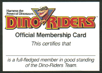 Next was your membership card, which one side was your I.D., and on the other side was the artwork which was shown on the back of the boxes for 2nd series Dino Riders.