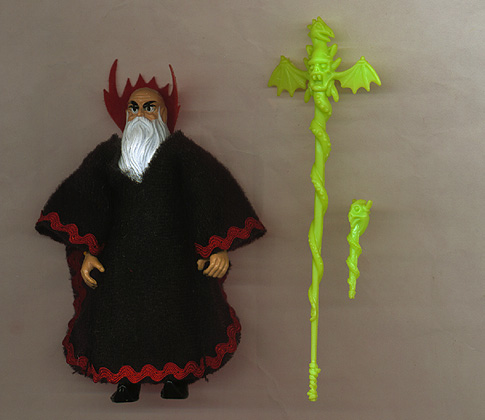 Action Figure: Like all other D&D he is extremely detailed. The figure stands 3" 3/4 and is poseable in the arms and legs. He comes a long black cloak with red trimming. He aslo has a Green staff with dragon wings and a small green wand. He also made a appearance in the CBS D&D cartoon! He was only released in the 1st Series of AD&D.