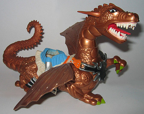 Varations: In the 2nd year of AD&D, LJN re-released Destrier, Bronze Dragon and Nightmare with their appropriate figures. The figures were placed near the creature for this special 2-pack. These 2-packs are hard to come by. |