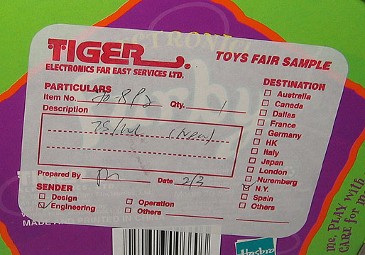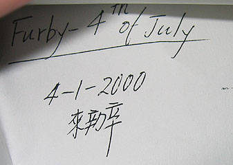 ![]() | Unproduced 4th of July Furby close to finalized production. This furby is very intresting in the fact it has no battery prongs and door is sealed shut. But unlike any other Furby I have, it has a electronic cord coming out that hooks into a power source. I think this is the exact 4th of July furby that was toured around at ToyFair and other shows and operates partially when hooked up. Pic.2, Pic.3, Pic.4, Pic.4 | Offer | |||