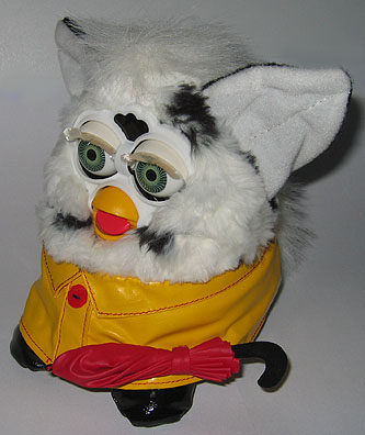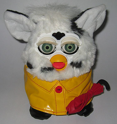 ![]() | Unproduced Sining in the Rain (Or just plain Rainy Day Furby) Furby. Looks to be the finalized sample piece for production. Has electronics (I think), but I could not get him to work. Really cool with his little rain booties and jacket. Pic.2, Pic.3, Pic.4, Pic.5, Pic.6 | Offer | |||
