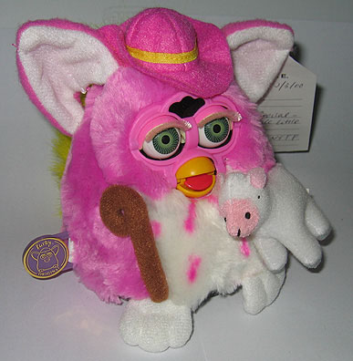 ![]() | Unproduced Special or a idea that was tossed around. Furby is a Baby Furby in nproduced colors and has a hat, shepard's cane and a lamb. These are all hand stitched and the lambs is hand painted. This sample is stated to be used for the New York Toy Fair of 2000. Furby is fully operational and when on runs through a test program of eyes opening and ears moving etc. Pic.2, Pic.3, Pic.4 | Offer | |||