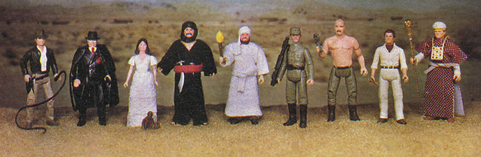 Action Features:Indy does have many features of action. he has a pull back action with his right arm allowing him to "draw" his pistol from his hip. This feature was taken from the Butch Cassidy & Sun Dance kid toy line Kenner did earlier. The arm can also go the other way and allow the whip to be "whiplashed" downward.