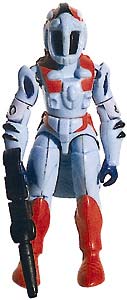 has dark blue areas painted on the side of the shins. Matchbox (China): Like the Harmony Gold figure, this version is more slender than the Japanese version. The reddish areas have more of an orange hue to them. The gun that comes with this figure has a different styled handle. Harmony Gold (China):This figure has the darkest paint job of the three. It shares the same body style with the Matchbox Chinese version. The shins are also painted blue here. |