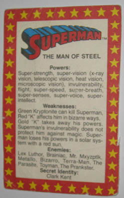 Superman Bio Card | Creases all over. Art side ripped up. | SOLD |