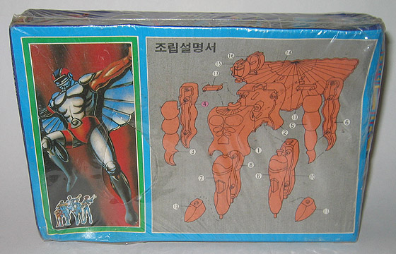 This is a mode kit of the Silverhawks ship the Steelwill. We are not sure if this piece is a knock off or a licensed product. The fact that no model kit was ever designed in North America or Europe points to it being a licensed product. The kit when fully assembled would measure roughly 6" inches tall. Overall a intriguing piece with spectacular artwork.