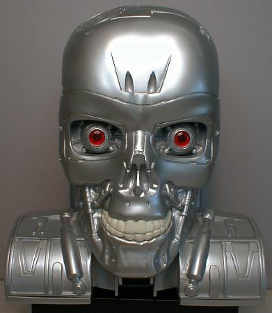 This is a prototype of the Transfoming Terminator Head/Playset from Galoob. It is made of cold cast resin and is also hand painted. There are no production markings on this piece. It was originaly used for photgraphy and also in the Toyfair display. Bieng a prototype, it has more enhanced details and colors than the produced set.