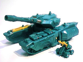 This is a Test Shot of the Aramada Megatron Tank. The toy is in non production colors. Unknown on markings and if it lights up.