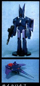This prototype picture comes from Takara's own museum. It was pictured in the Headmaster Laserdisc set along with a few other toy prototypes from the Movie. Cyclonus is much cooler and looks more the movie version. The ears are pointed, and it seems them can seperate a little further, and then close in on the nosecone of the jet. This feature was never produced. Also notice the