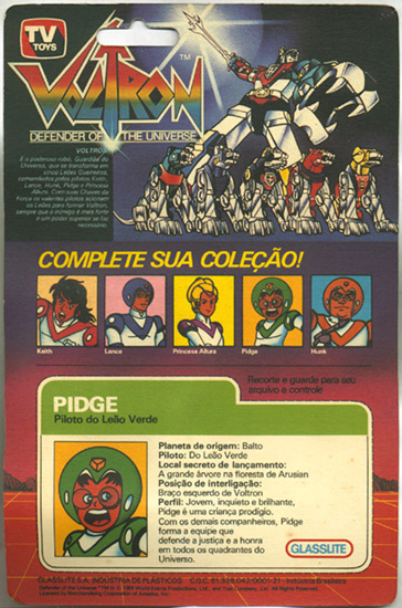 This piece is from Brazil and are from 1984. The card style and overall looks makes this such a awesome piece! The original Panosh art is displayed, and the background is pushed down to the grid which he stands on. The back of the card shows the 5 pilots and the character Bio. It is unknown if any vehicles were produced or any other figures than just the five pilots.